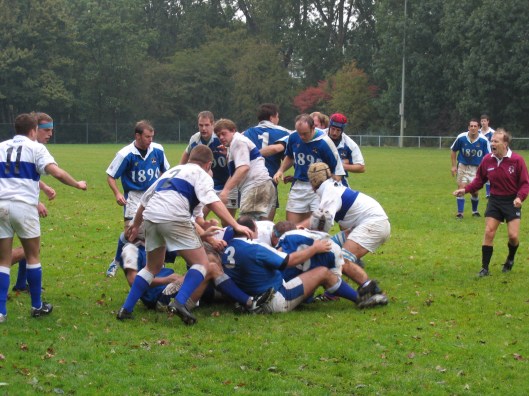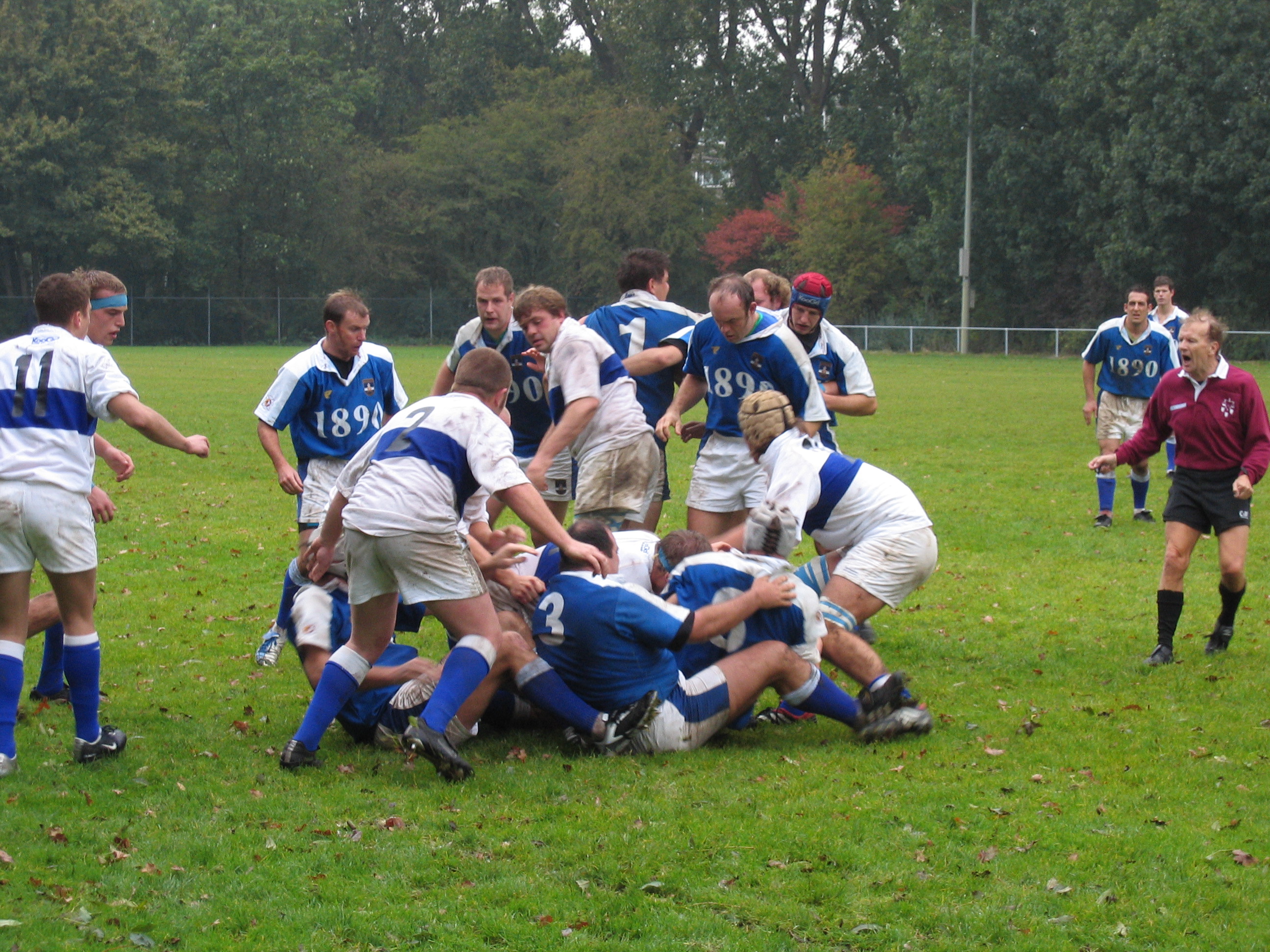 Tenslotte een foto van een wedstrijd tussen NFC en AAC op 17 oktober 2004 te Amstelveen met Duncan als scheidsrechter. Ik weet niet wat hij toen riep, maar waarschijnlijk dacht ie: “accidental rubbish”.