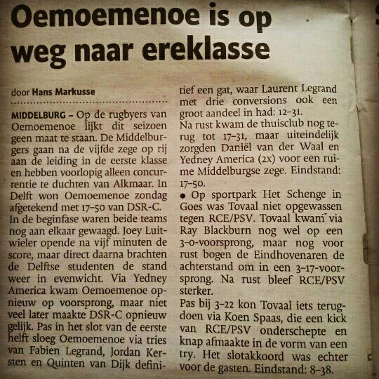 Dat is ook de reden waarom ik zei na de wedstrijd dat ik niet zou weten hoe we de wedstrijd wel hadden kunnen winnen. Dat is natuurlijk niet waar; als we de rucks sneller met meer mensen hadden weten te winnen, dan hadden we deze wedstrijd op glansrijke wijze gewonnen. Maar als wij de fysieke vermogens zouden hebben om sneller meer mensen bij de rucks te krijgen, dan zouden we niet in de derde klasse spelen. Dus dat is geen reëel argument.