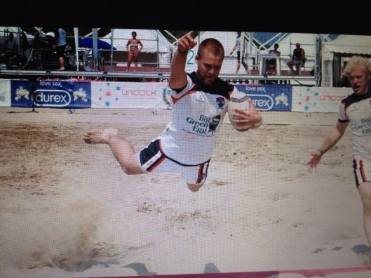 verloren, gaan zij nu naar de halve finale en niet de Lions. Een flinke klap voor de spelers. Maar waar de Hoekse beach gladiatoren van ijzer en beton zijn, lieten zij het hier niet bij zitten. De tweede wedstrijd van de dag diende zich aan en deze werd met beide handen aangegrepen om te laten zien wie de regerend kampioen nog steeds is. Met 13-5 werd dan ook gewonnen tegen Oostenrijk. De grootste score van het toernooi. De Lions waren zo gretig, dat er zelfs nog werd gescoord met een sin-bin en dus een man minder in de zware zandbak.
