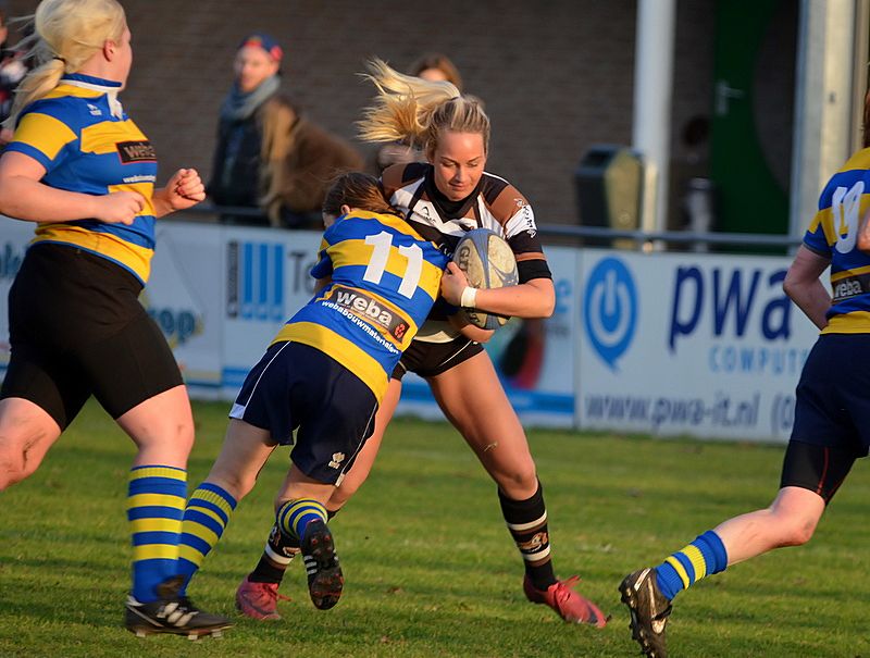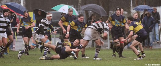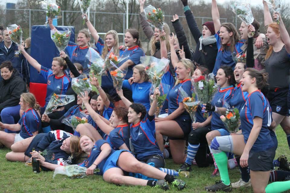 En zo gingen we door…. Nog geen 10 minuten daarna een fantastische run van Hanneke …een voorwaarste met back aspiraties!! Een geweldige run over driekwart van het veld resulteerde dus ook in een prachtig mooie try… Het publiek heeft ervan gesmuld!!!! En zo ging het dus eigenlijk gedurende de hele wedstrijd…het spel tussen de voorwaartsen en de lijn werd prima gecombineerd, support was er altijd, tackles werden gemaakt en Maaike, Xandra, lou, Fabienne en aylin maakte nog n hele rits tries….. Leigh scoorde zelfs haar eerste try!!Maaike converteerde er 5 en zo kwam het einde van de wedstrijd in zicht…. De laatste actie van de wedstrijd was meteen een van de mooiste van de wedstrijd… De bal werd via goed handwerk heel mooi op volle vaart de lijn uit gespeeld, wat resulteerde in de laatste try van Aylin… Alle meiden die aan de kant stonden werden het veld opgeroepen terwijl Maaike de laatste conversie nam… Het fluitsignaal ging… Einde wedstrijd…wat waren we blij!!!EINDELIJK!!! We hebben gewonnen met 60-10!!