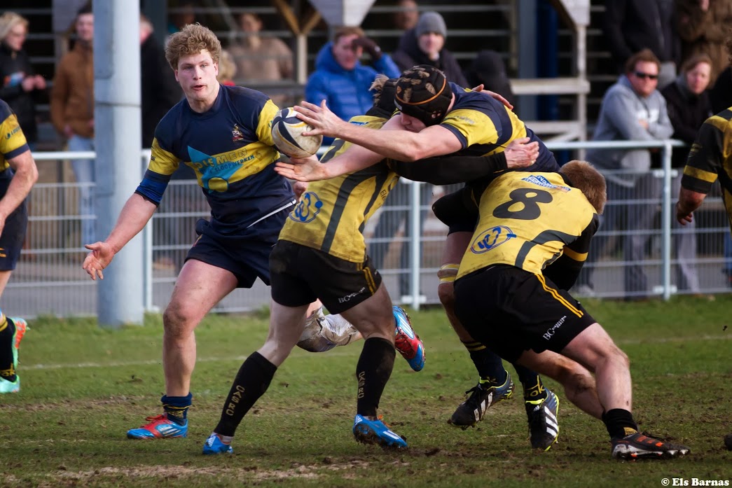 Voor de rugbyers van The Bassets uit Sassenheim was de opdracht voor de laatste drie wedstrijden simpel en duidelijk en dat was zoveel mogelijk punten vergaren. Dit was alleen mogelijk om tijdens de wedstrijden te domineren en de lakens uit te delen. Trainer Robbert Broers had daarvoor zijn ploeg voor de wedstrijd tegen De studenten RSRC in Rotterdam op cruciale plaatsen veranderd. Zo stond Roger Scheffer weer op zijn geliefde Negen en bemande Mohammed Amine L’Mal de begeerde Tien. Deze spel verdelende posities zitten beide heren als gegoten. Scheffer kan van uit daar de zware jongens voor het betere beuk en sloopwerk aansturen en L’Mal de rappe mannen lanceren, terwijl ze zelf de tegenstander door tactische besluiten pijn kunnen doen en dat deden ze voortreffelijk tegen de Rotterdamse Studente. Het rendement was veel te laag in de 1e helft van de wedstrijd. De talloze kansen stierven op 1 keer na een te vroege dood. Alleen Tom vd Krogt kon een try drukken die door Scheffer werd bebonust, 0-7. Op slag van rust kregen de studenten zelfs de gelijkmaker op een presenteerblaadje aangereikt, 7-7.