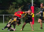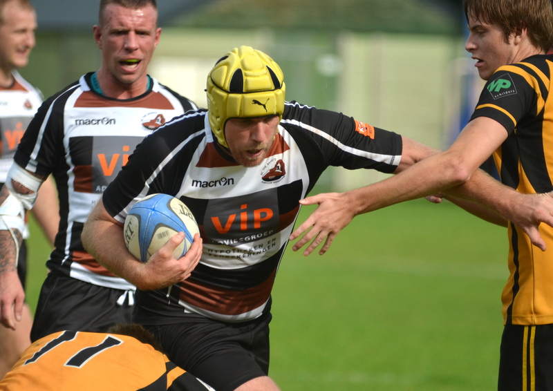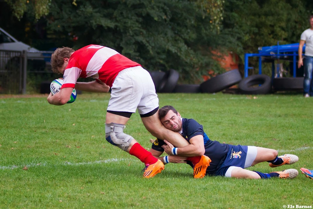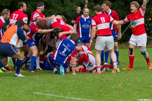 Zo spannend werd het afgelopen zondag niet. Daarvoor waren de Bosschenaren, voor het eerst in het nieuwe tenue, simpelweg te dominant. Vanaf minuut één begon de ploeg de Castricumse lijn aan te vallen. Dit resulteerde aanvankelijk alleen in een afgekeurde try en een door Maarten van Osch benutte penalty. Het duurde echter slechts een kwartier totdat Aidan Scanlan zijn eerste try in de Ereklasse binnenliep, na een prachtige onderschepping en een daaropvolgende race naar de achterlijn. De conversie was een prooi voor Maarten van Osch, waardoor het binnen een kwartier al 10-0 was voor The Dukes. De Bosschenaren lieten echter wat foutjes in hun spel kruipen, drukten niet echt door. Toen Costin Buburuzan ook nog met een gele kaart het veld moest verlaten, rook Castricum zijn kans. In de vijfentwintigste minuut scoorde het dan eindelijk, na een try van captain Pieter Bob Wieringa. De 10-5 die daardoor op het bord kwam, bleek ook de ruststand te zijn.