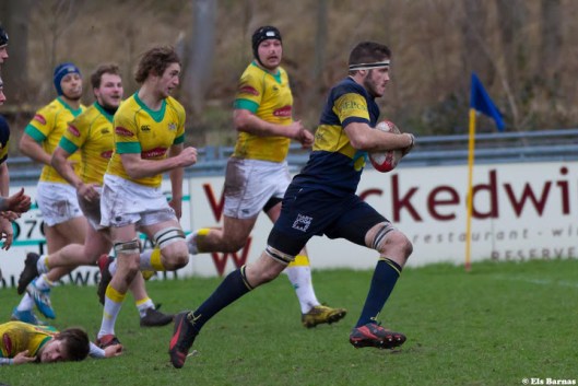 Vlak voor rust is het Christopher Artiss die na een prachtige, rechtstreeks van het trainingsveld gekomen, aanval de deur voor Obelix definitief in het slot gooit. Met een try en een conversie wordt de ruststand van 26-3 op de borden gezet.