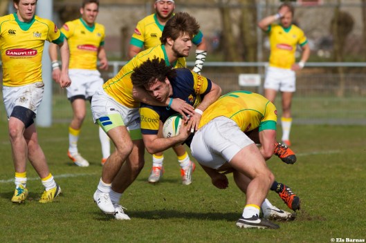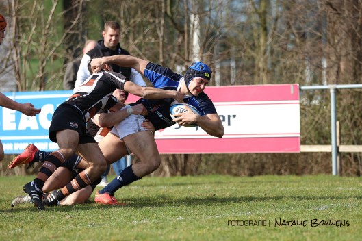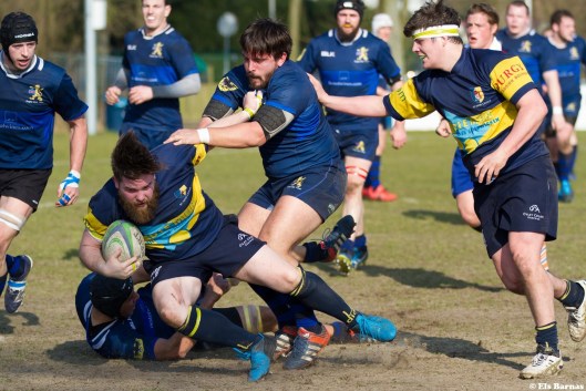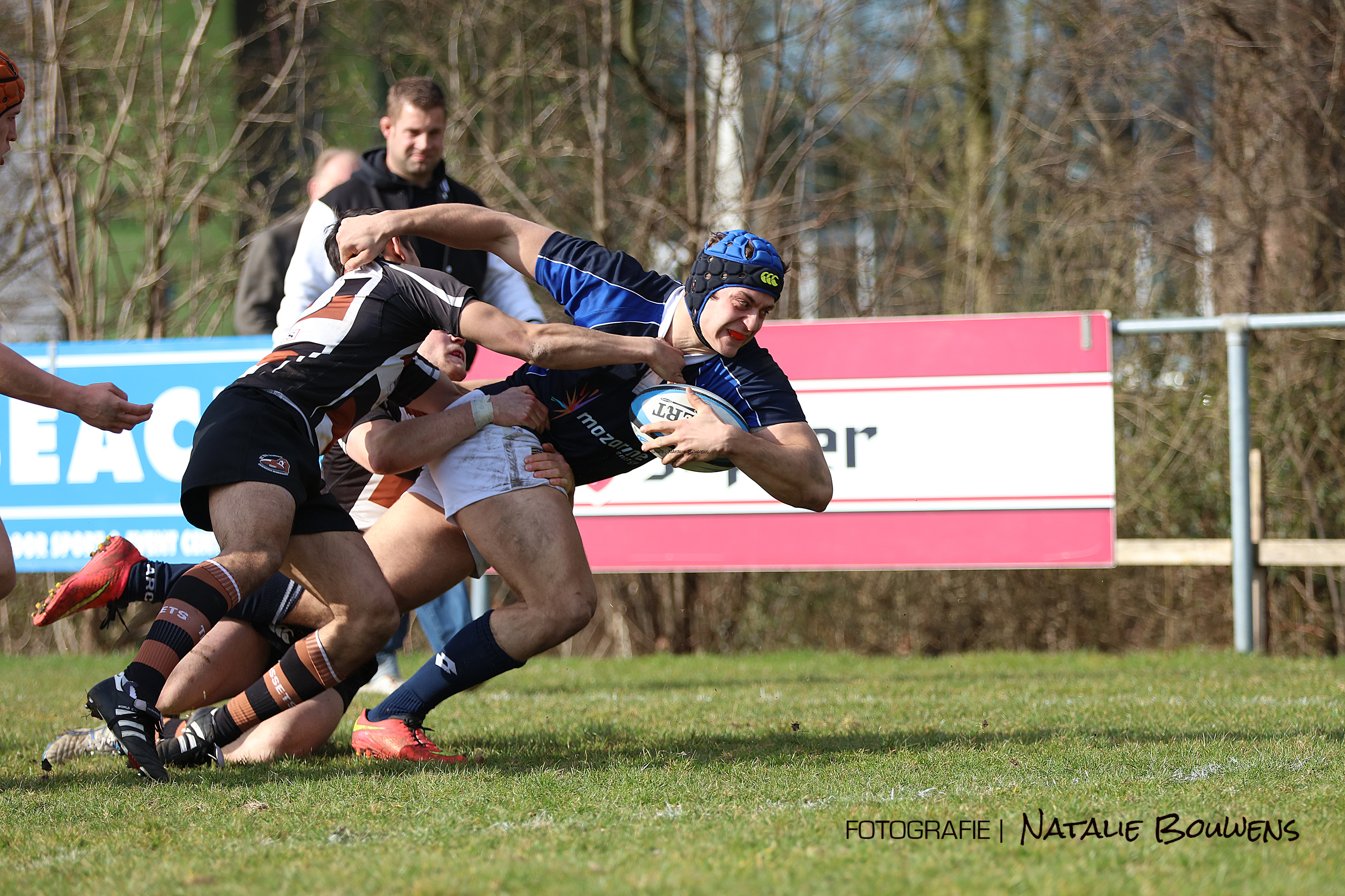 De overheersende voorwaartsen van Amstelveen bleven zich meter voor meter richting de achterlijn van de Bassets werken. Door een aanvalsfout van de tegenstander kreeg ARC een scrum op 5m voor de try line, waaruit opnieuw waardevolle 5 plus 2 punten werden gescoord. Samen met een benutte penalty kick stond er bij rust 22-0 op het scorebord.
