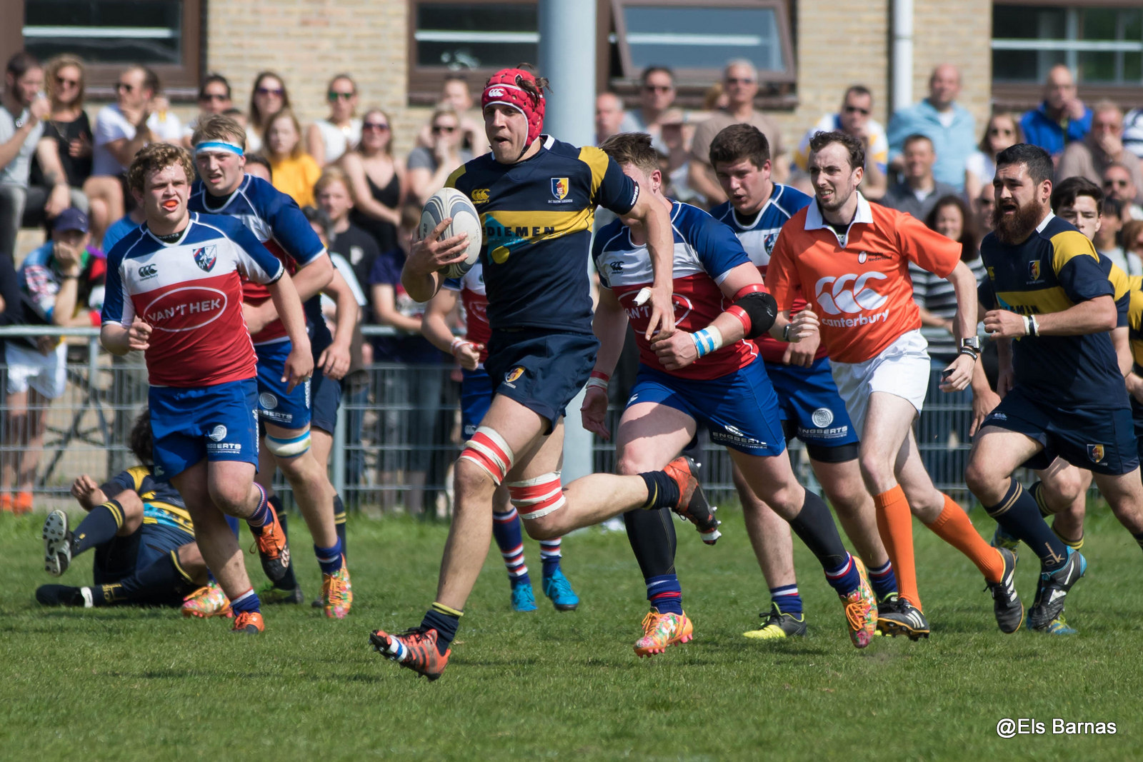 Nog binnen het halfuur was de stand 19-0 nadat Frank Nijenhuis – vandaag captain omdat hij eveneens zijn afscheidswedstrijd speelde – bij de hoekvlag een aanval kon afronden. Flanker Nick Gordijn brak op eigen helft op snelheid door, kreeg een hoge tackle rond de nek te verwerken maar maakte daarna optimaal gebruik van het voordeel dat de ref liet uitspelen. Hij bereikte knap de 22m van de tegenstander en na een snelle ruck en wat snelle passes was het Frank Nijenhuis die kon profiteren van de gecreëerde overlap: 19-0. Op slag van rust kon Benjamin Garcia ook nog de vierde try van de middag aantekenen. Na een pick-up uit een scrum op de half-way line van Ross Bennie-Coulson werd scrum-half Garcia vrijgespeeld en waarna hij via winger Fabio Bouriche de bal terugkreeg en scoorde. Met de derde rake conversie van Leon Koenen erbij werd het zo al 26-0 bij rust.