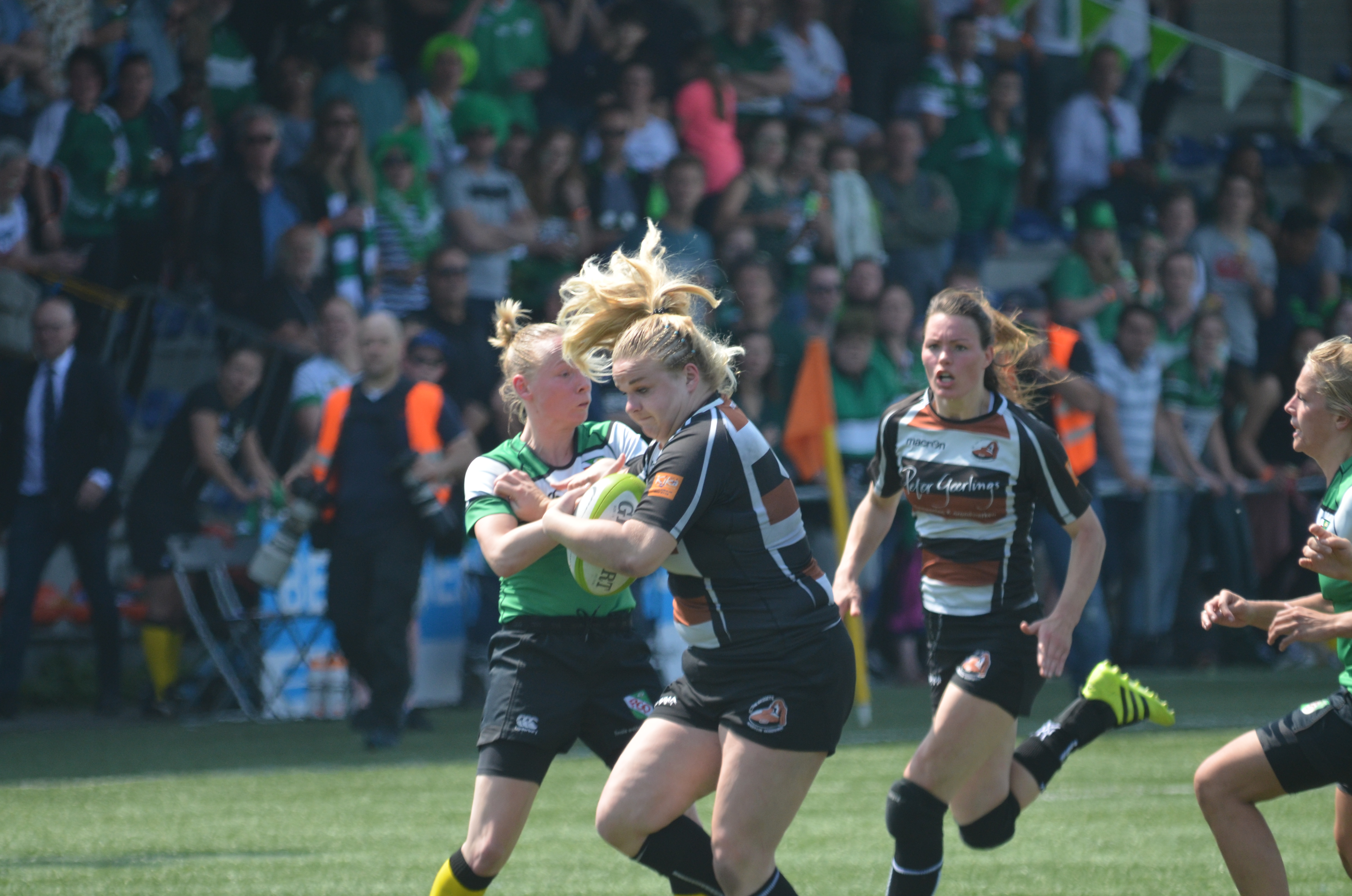 Naast de korfballers heeft Sassenheim er nog een landskampioen bij. Het vrouwen team van rugbyclub The Bassets pakte in een zinderende finale de titel. De Bassets Babes speelde het hele seizoen sterk rugby en gingen als koploper de kruisfinale in en eiste hun plaats op voor de finale. Deze finale werd op pinkster zondag in het nationale rugbystadion in Amsterdam gespeeld. Hun tegenstander was de verliezend finalist van vorig jaar, rugbyclub Delft, en die wilden niet weer als verliezer van het veld stappen dus het beloofde een hete middag te worden. Voor de volgepakte tribunes was het zaak voor The Bassets Babes het hoofd koel te houden. Beide ploegen gingen vol gas en speelde op het randje waarbij Delft het betere spel vertoonde. Zij opende dan ook de score, 0-5. De spanning leek bij de Sassenheimse formatie partte te gaan spelen. Toen die onder controle was vonden zij ook de doellijn en met de daarbij benutte conversie werd de ruststand 7-5 bereikt.