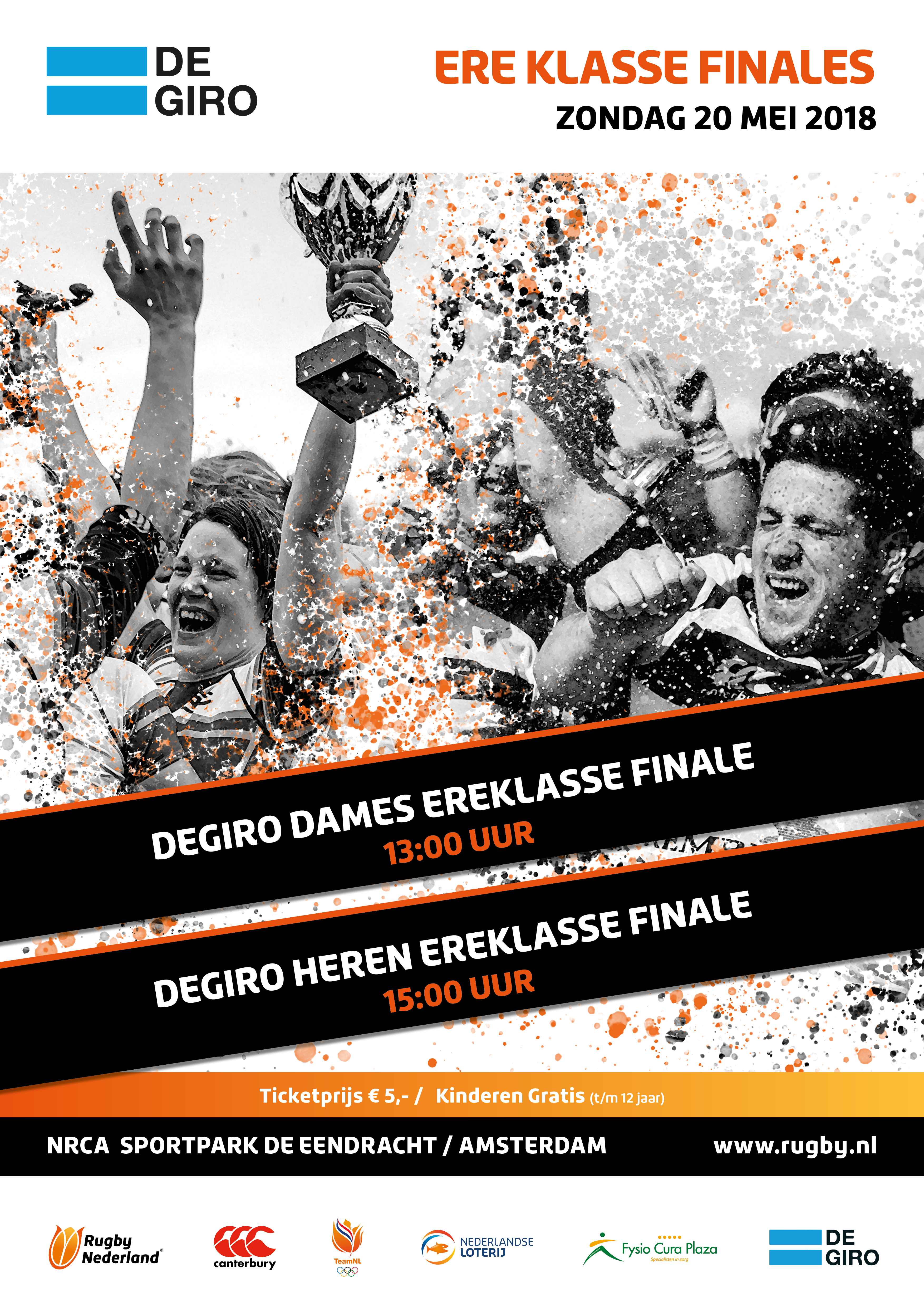 De DEGIRO Ereklasse Finale Heren wordt gespeeld op zondag 20 mei om 15:00 uur op het Nationaal Rugby Centrum in Amsterdam.