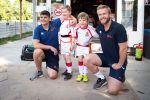 Leidschendam, 4 juni 2019 – Zaterdag 1 juni organiseerde de Voorburgse Rugby-Club (VRC) zijn eerste Turven Toernooi aan De Star. Maar liefst zestien Turventeams van negen verschillende clubs (160 kinderen in totaal) namen deel aan dit bijzondere evenement waar 6 – 8 jarigen de sportieve strijd met elkaar aangingen op de grasmat van VRC. Voordat sportwethouder Nadine Stemerdink het toernooi met luid getoeter officieel opende, kregen ze als verrassing een professionele warming-up verzorgd door de rugby professionals David Weersma en Ross Bennie Coulson, beiden lid van het Nederlandse team. Uiteraard was er ook tijd voor de rugbyjeugd om een handtekening te scoren, net die ene vraag te stellen of om op de foto te gaan met hun jeugdhelden.