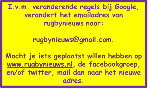 Afbeelding Emailadres rugbynieuws verandert 31 zondag jul 2022 Geplaatst door rugbynieuws | Filed under Uncategorized ≈ Een reactie plaatsen